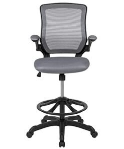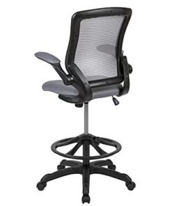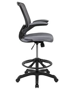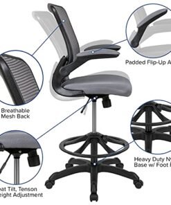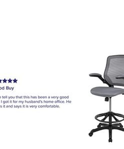 Flash Furniture Mid-Back Dark Gray Mesh Ergonomic Drafting Chair with Adjustable Foot Ring and Flip-Up Arms