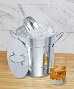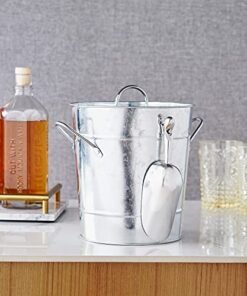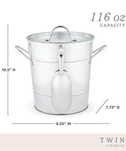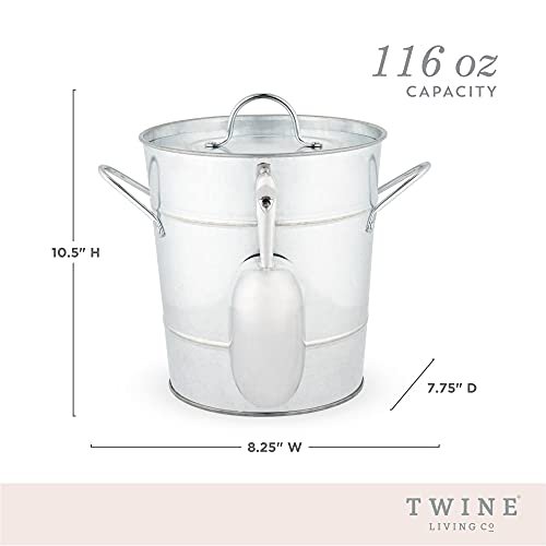 Twine Ice Bucket With Lid And Ice Scoop, Galvanized Metal Drink Tub, Wine And Beer Chiller, Holds 5.35 Gallons